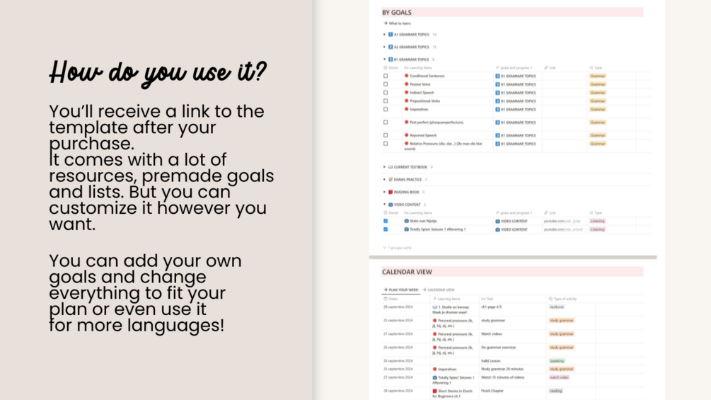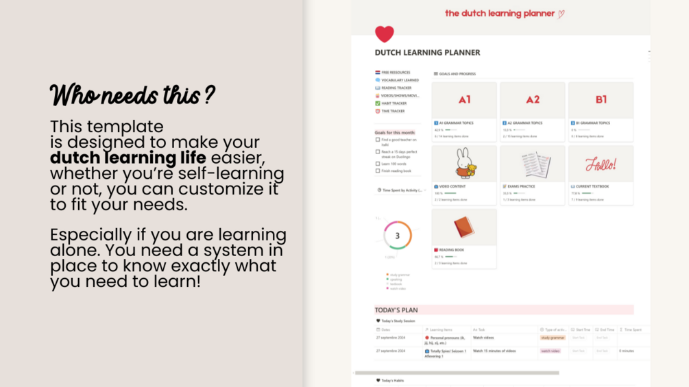 This template is designed to make your Dutch learning life easier, whether you’re self-learning or not, you can customize it to fit your needs.