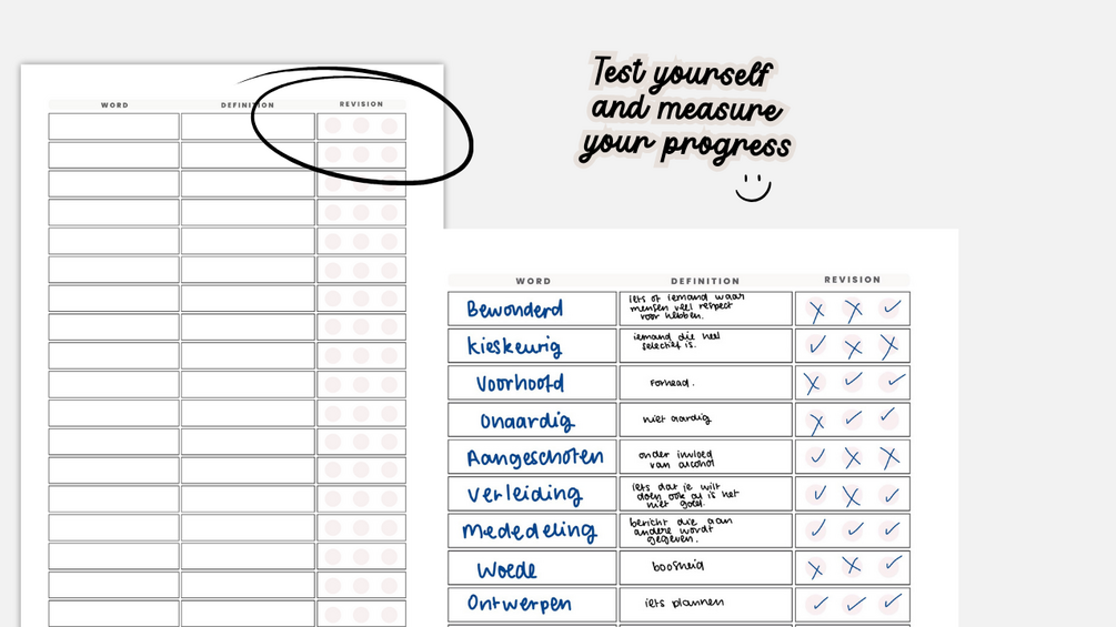 Easily add the new words you learn as you go to keep track of everything you learn, and track your progress!